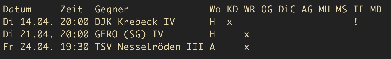 - m = möchte gerne bei dieser Begegnung spielen
